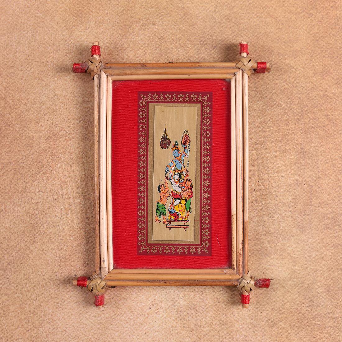 Bal Krishna Makhan Chori Palm Leaf Art – Tala Patra Chitra Wall Hanging