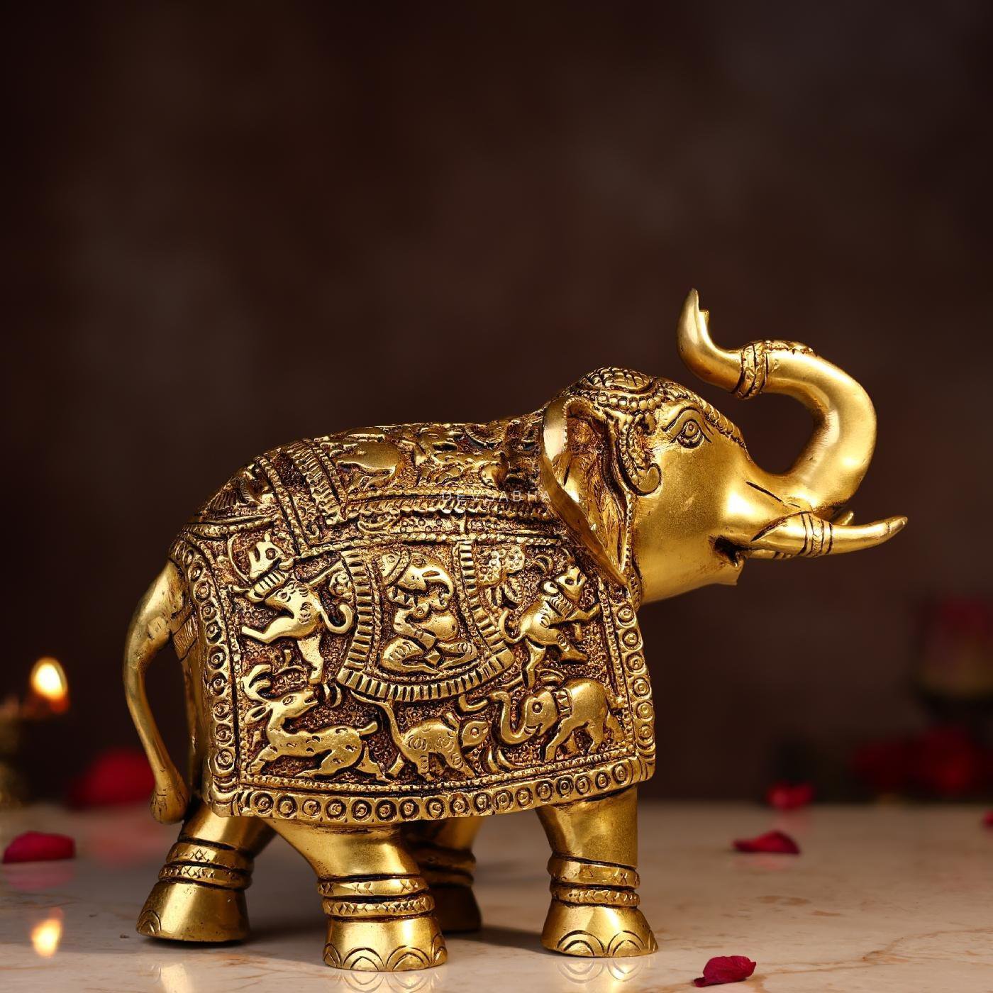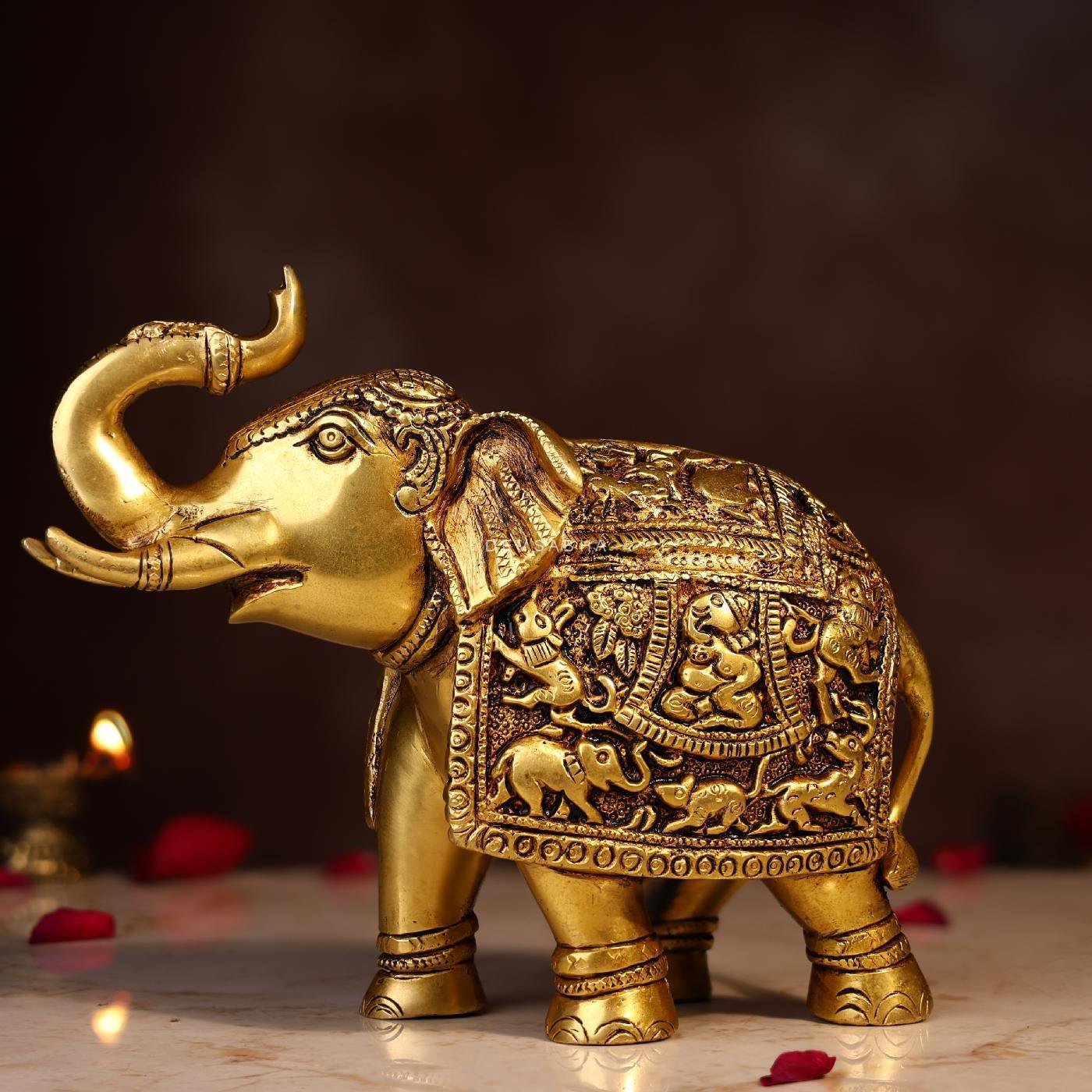 Perfect for auspicious gifting, housewarming, festivals, and traditional décor, this brass elephant statue brings timeless charm, positive energy, and elegance to any space.