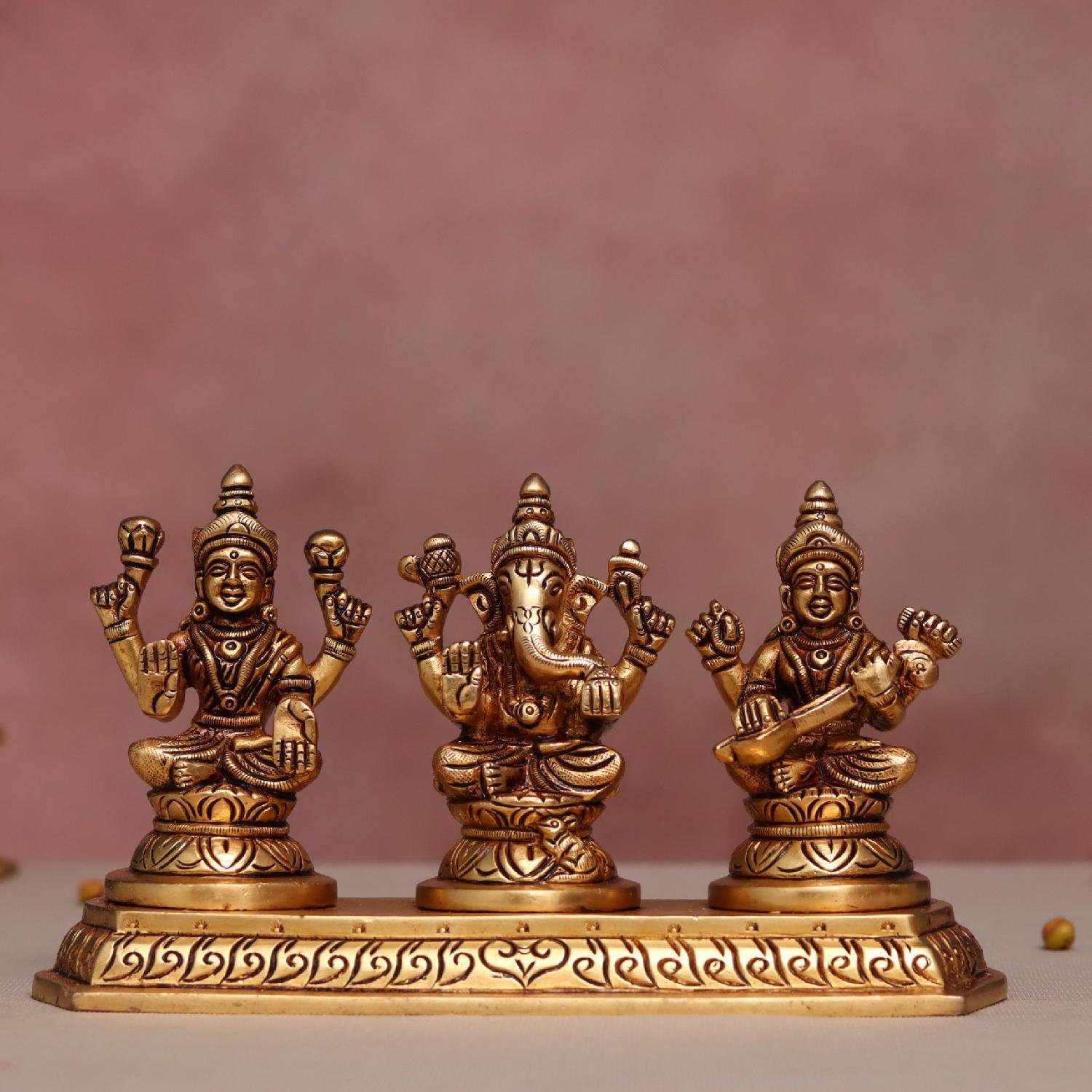 Brass Ganesh Laxmi Saraswati Idol – 4 Inch Handcrafted Statue