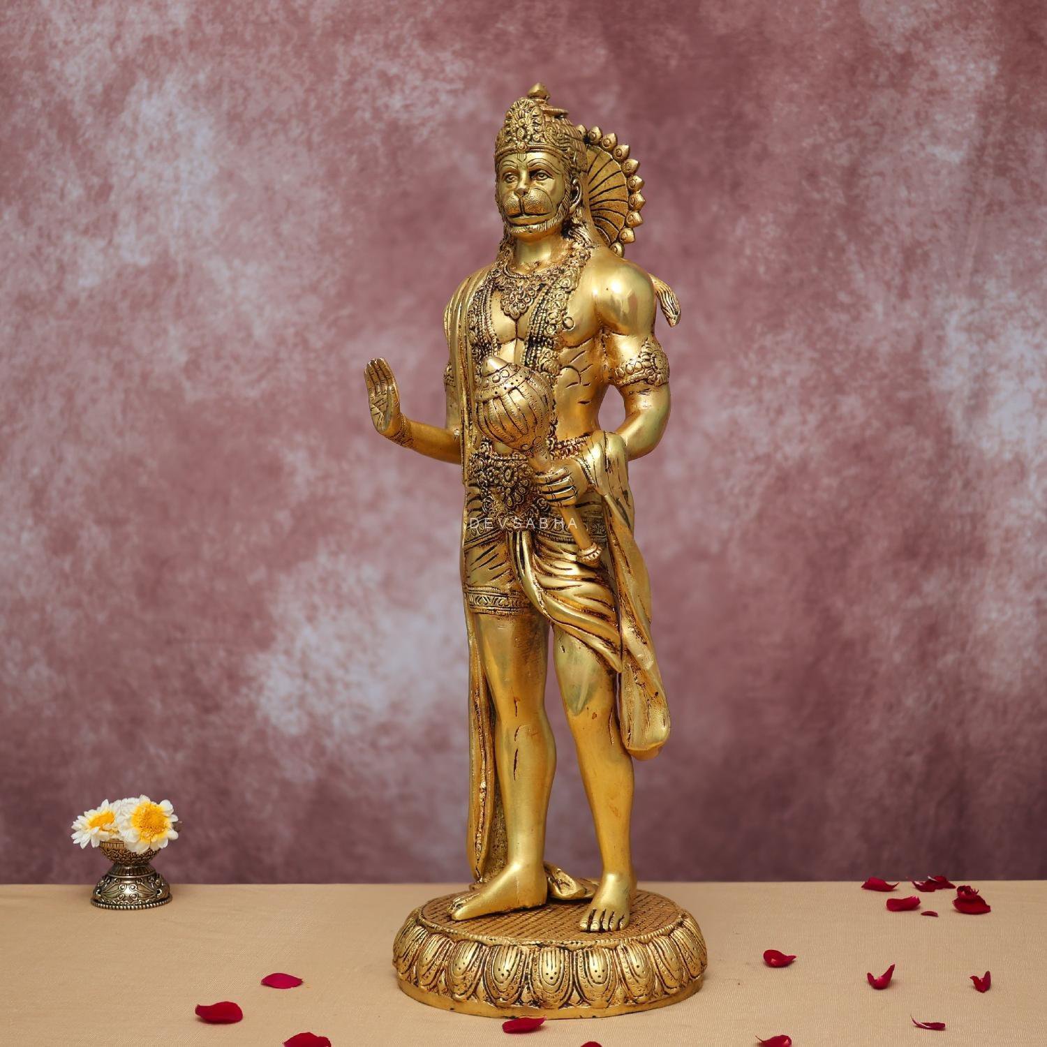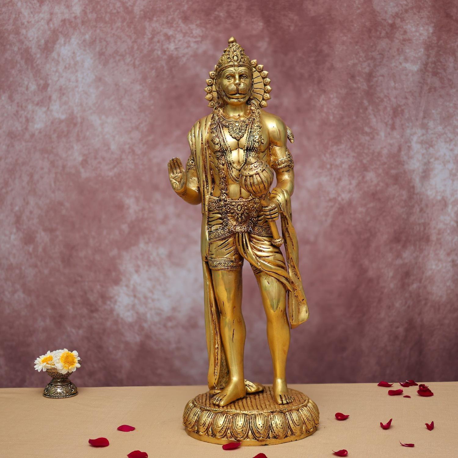 Brass Standing Hanuman Idol – 22.5 Inch Handcrafted Statue for Temple