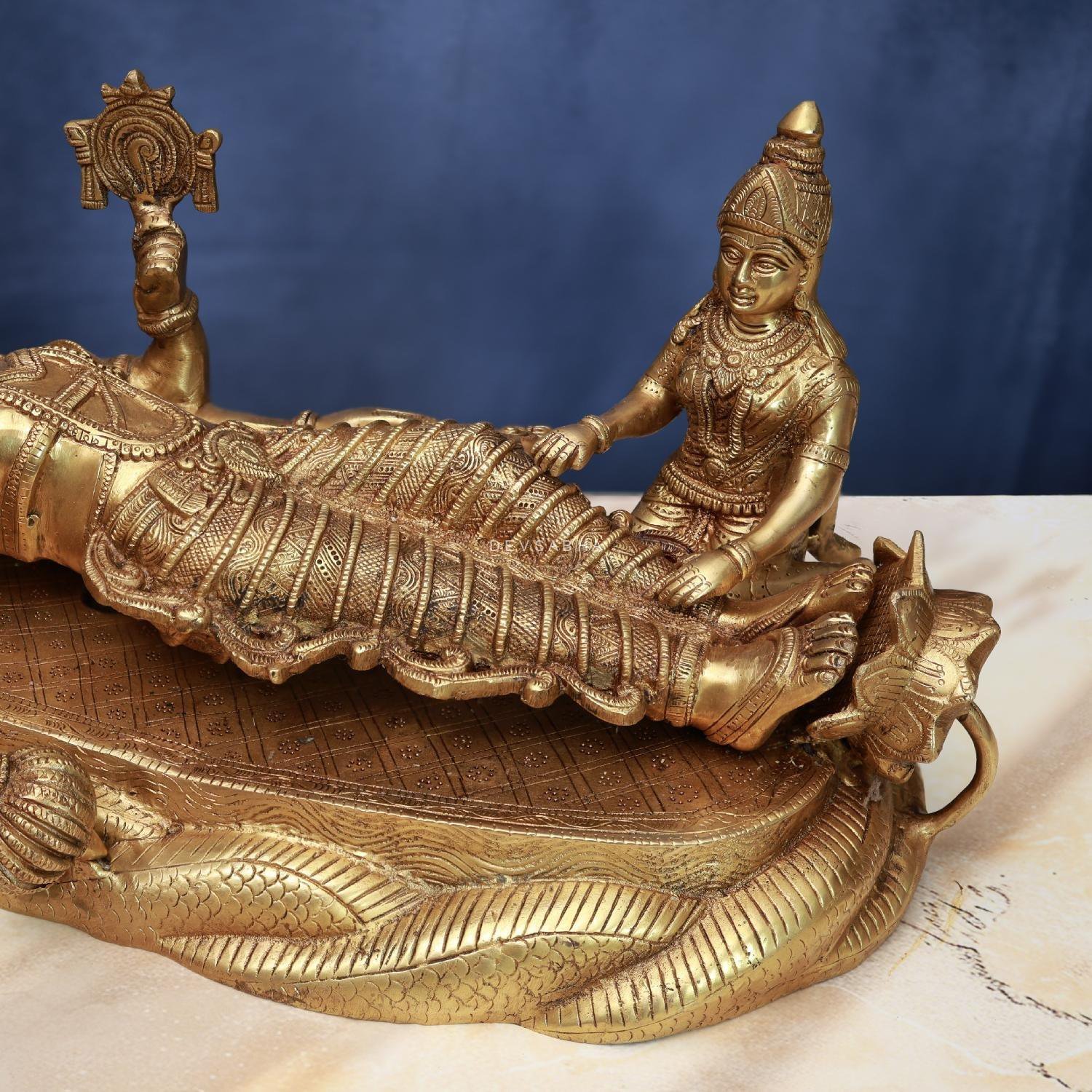 This 10-inch handcrafted brass Vishnu Laxmi idol beautifully represents divine balance, prosperity, and protection. Made with traditional ritual techniques and artistic detailing, this brass Vishnu Laxmi murti is perfect for pooja rooms, temples, or home décor, bringing spiritual harmony and grace to any space.