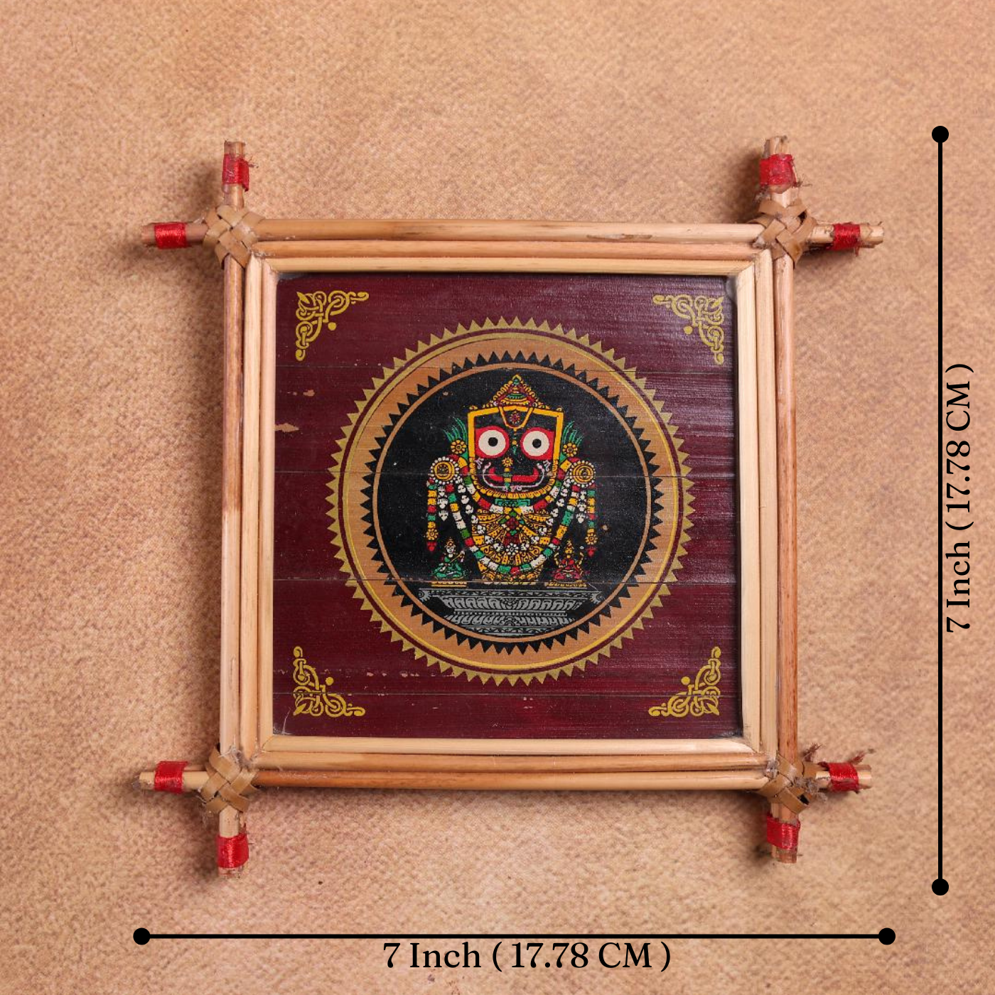 Handcrafted in the traditional Tala Patra Chitra style of Odisha, this artwork reflects the sacred temple culture of Puri. The bold circular framing enhances the divine presence of Lord Jagannath, symbolizing protection, faith, and spiritual energy.