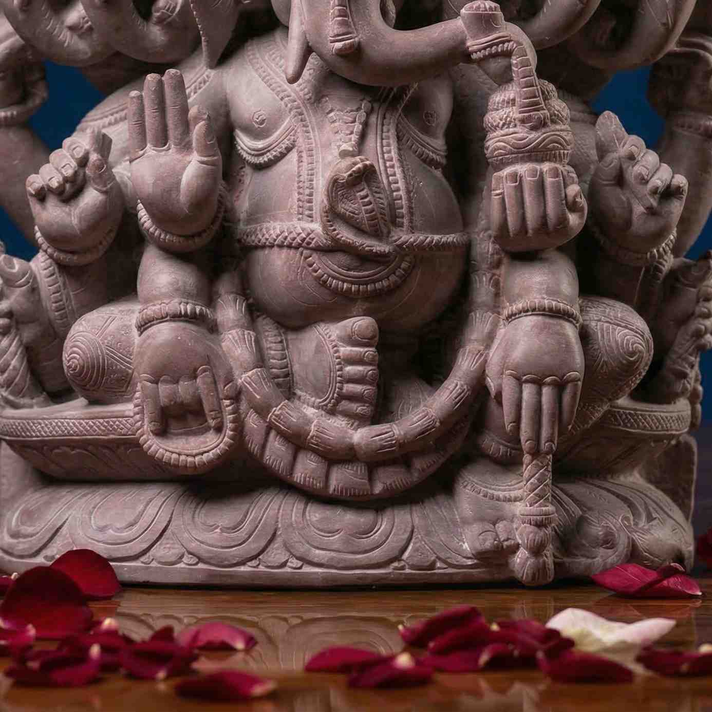 This beautiful 8 inch pink stone Panchmukhi Ganesh statue depicts Ganesha in his powerful five-faced (Panchmukhi) form, symbolizing protection, wisdom, and positivity from all directions. Handcrafted by skilled artisans, the statue features fine detailing and traditional temple-style carving.