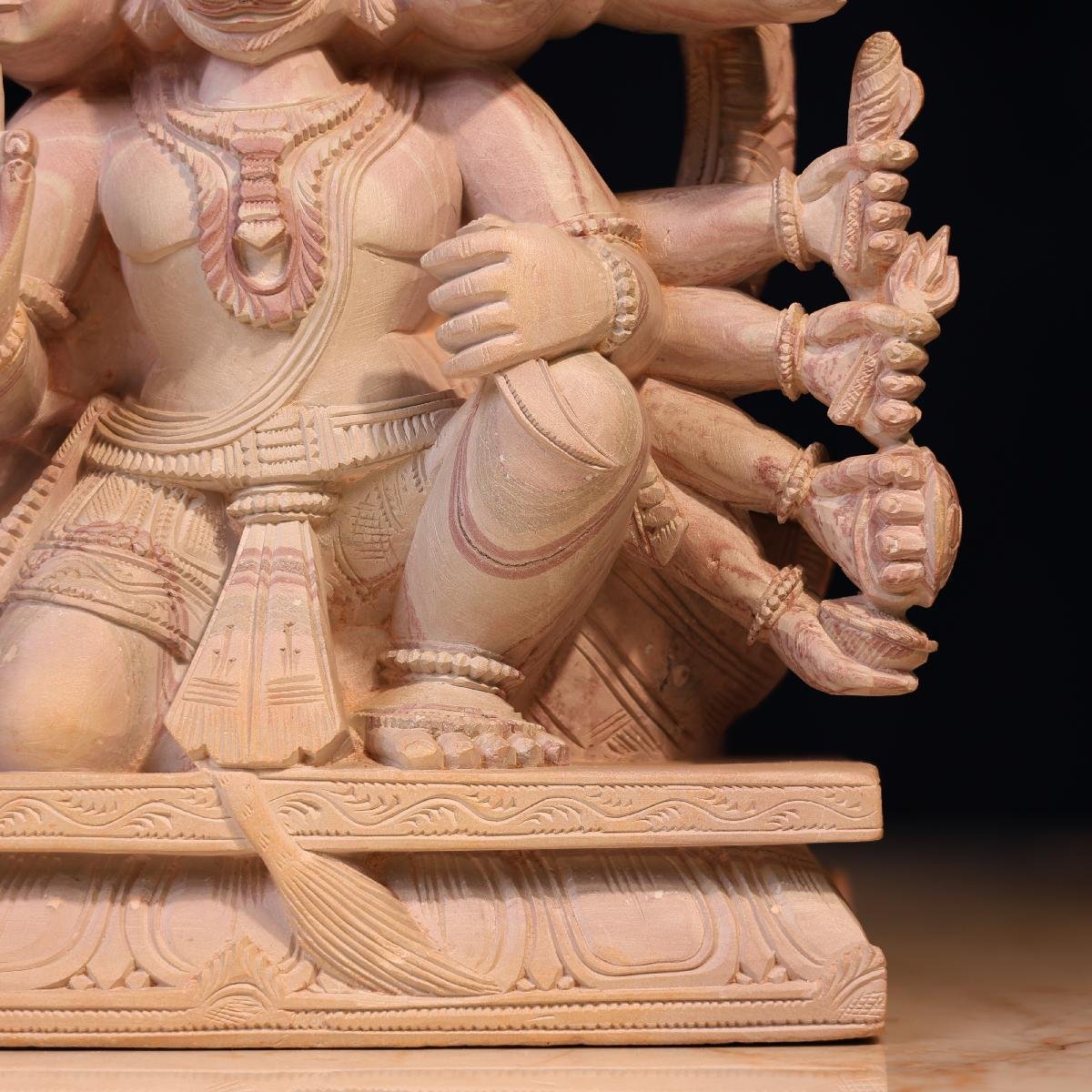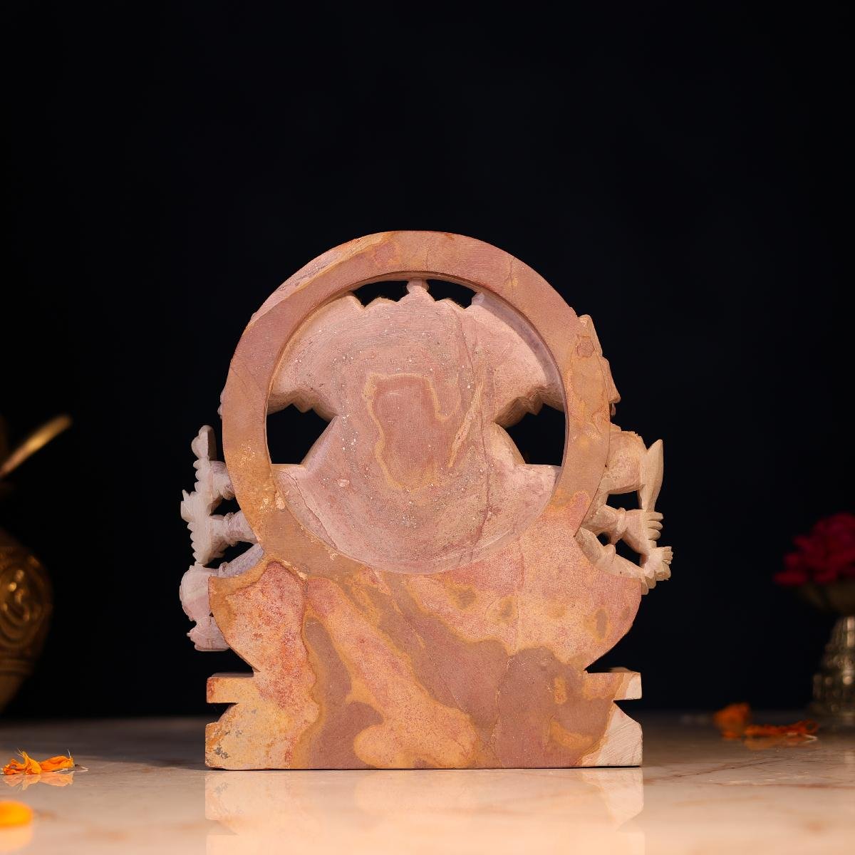 Expertly carved from elegant pink stone, the idol showcases intricate detailing of the five faces — each representing a unique divine aspect and direction of protection. The serene yet powerful expression, combined with fine craftsmanship, makes it a striking centerpiece for your home mandir, pooja room, office, or sacred décor space.