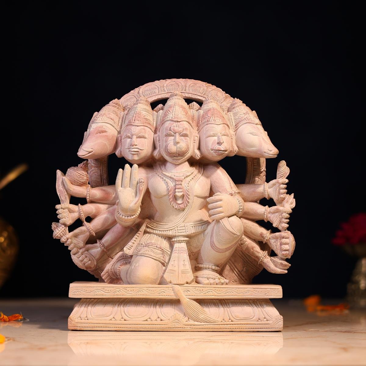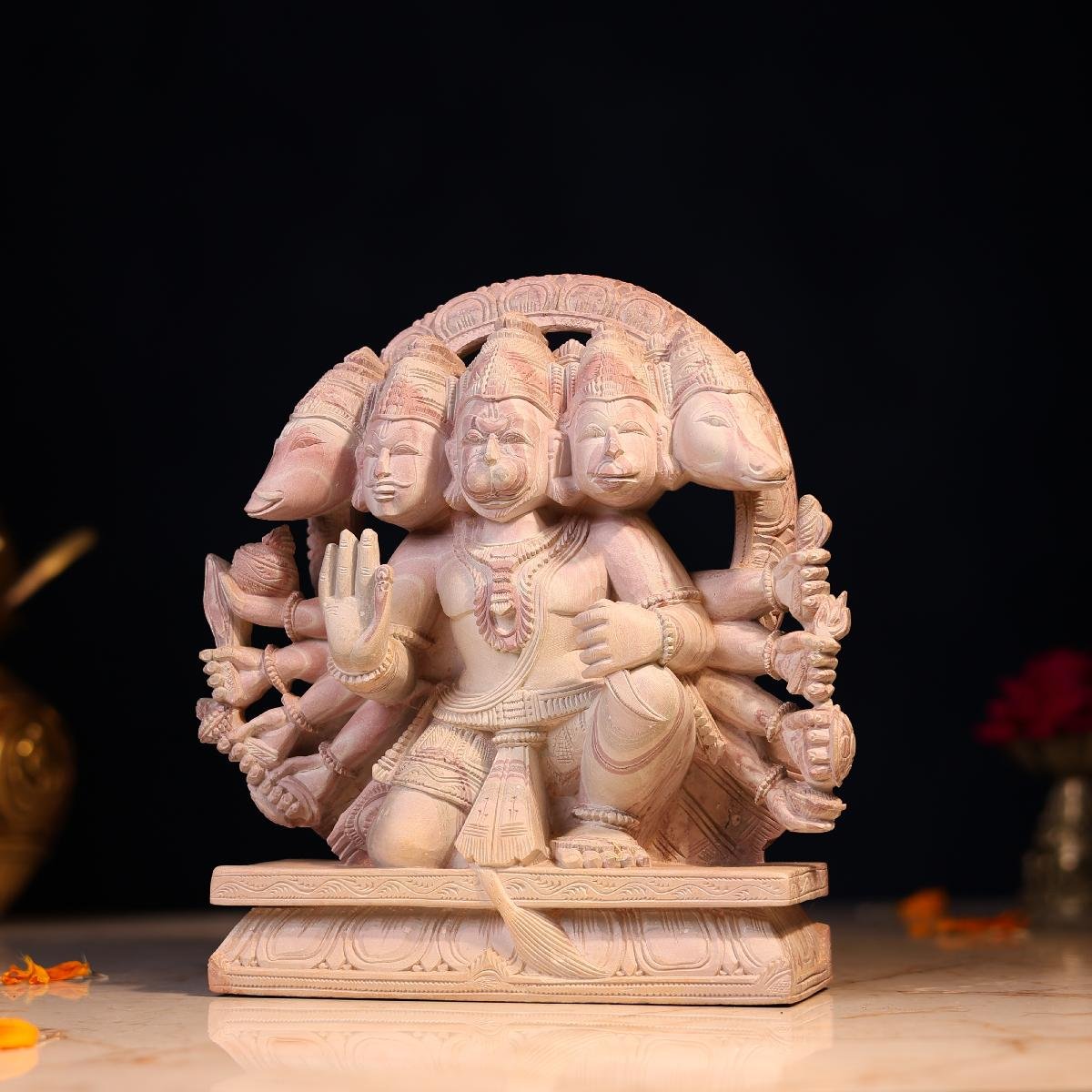 Bring home powerful divine protection and spiritual strength with this Pink Stone Panchmukhi Hanuman Idol – 8 Inches, beautifully crafted to represent the majestic five-faced form of Lord Hanuman. Panchmukhi Hanuman symbolizes courage, protection from negative energies, victory over obstacles, and spiritual power.