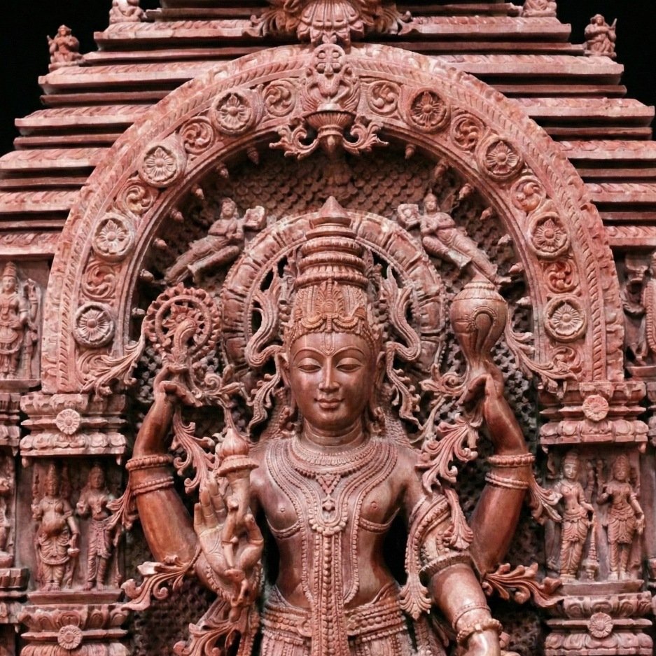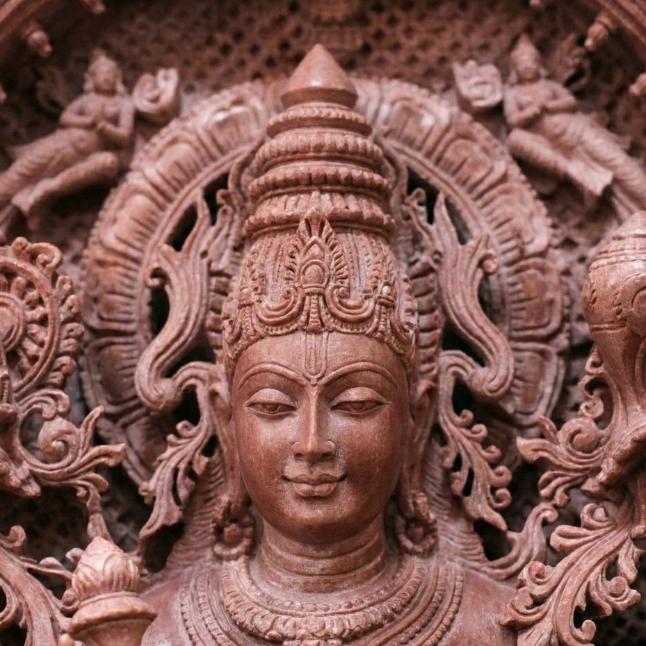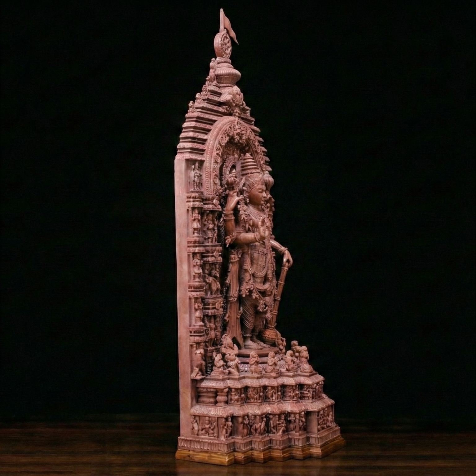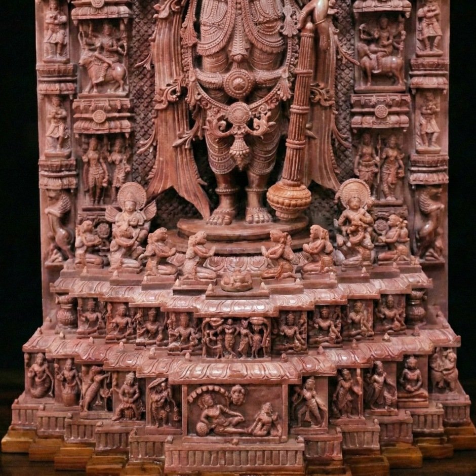 This large murti is carved from natural pink stone, chosen for its strength, beauty, and ability to hold deep detailing. Every part of the statue—from the serene face to the ornaments and posture—is carved fully by hand. Due to its size and detailing, each murti takes around 3 months to complete, involving multiple artisans.