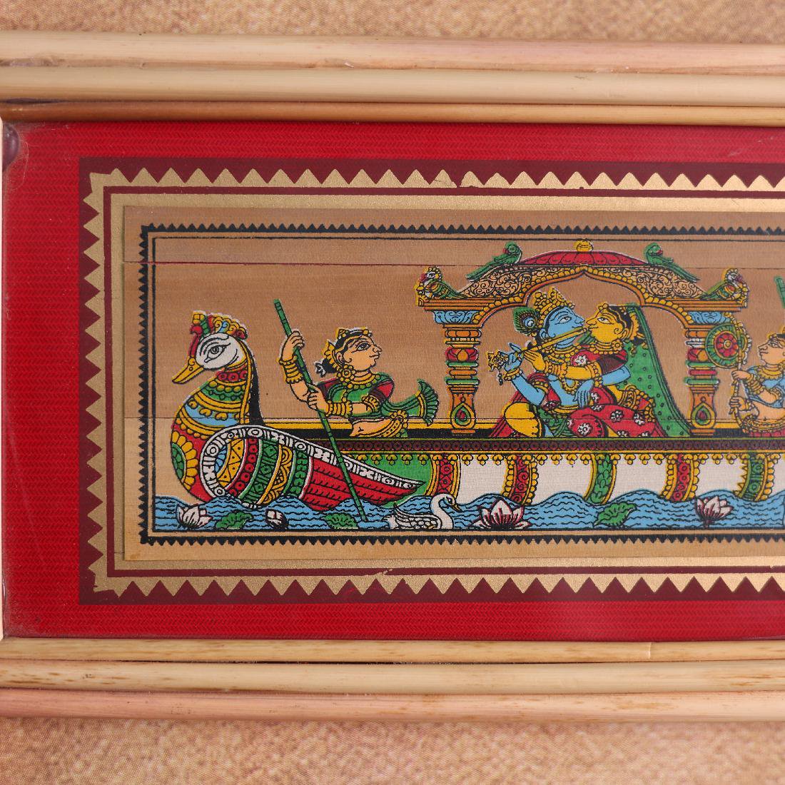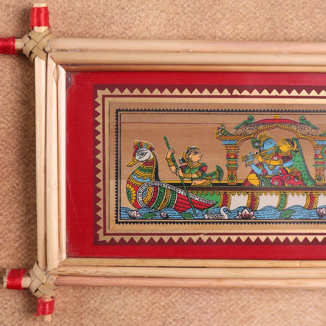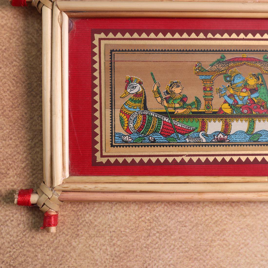 This enchanting Radha Krishna Nauka Vihar Palm Leaf Art captures the serene boat ride of