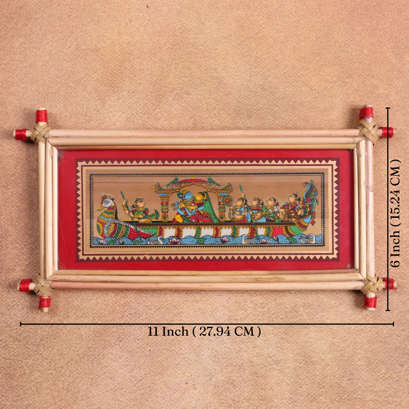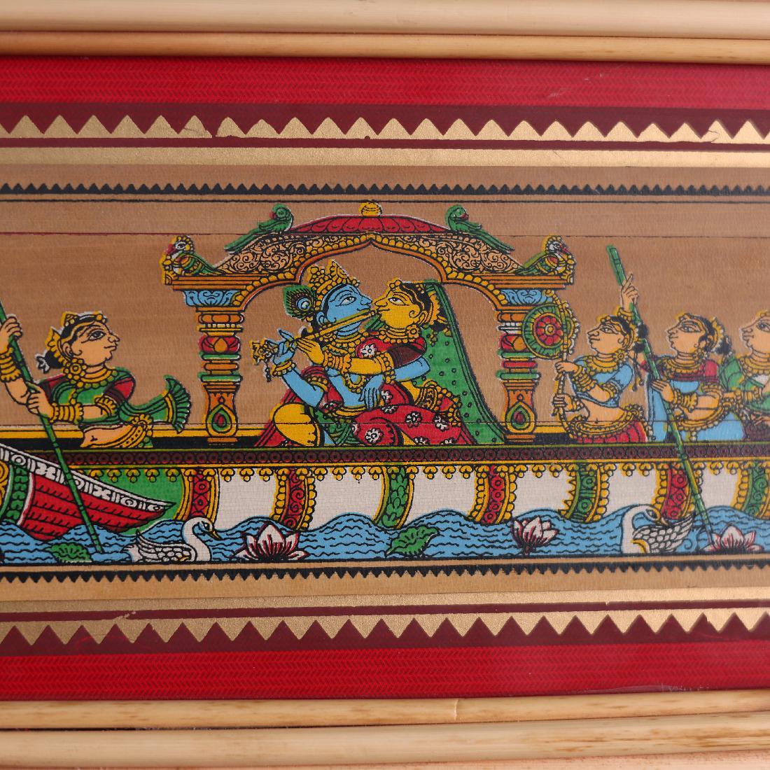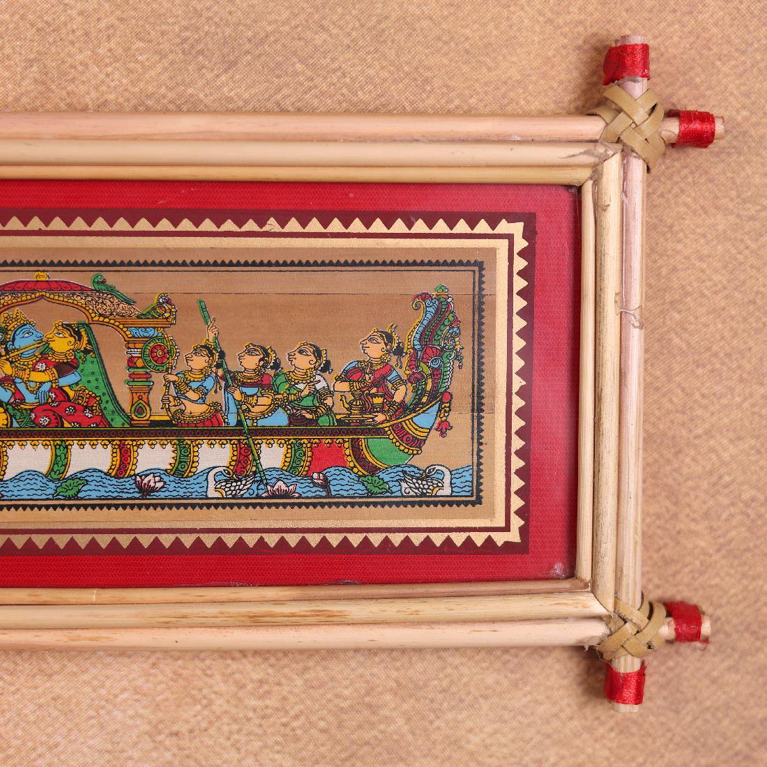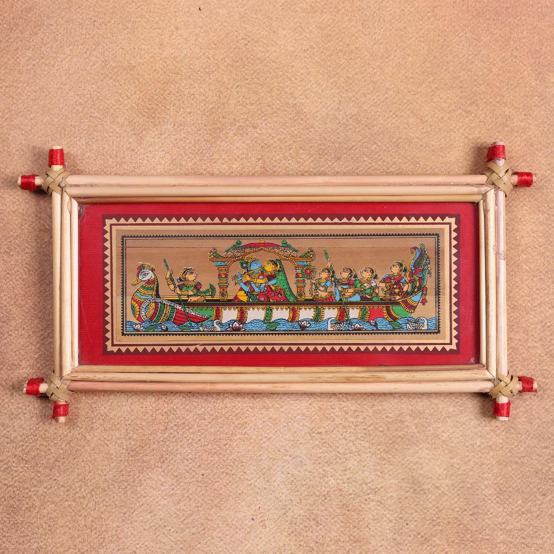 This enchanting Radha Krishna Nauka Vihar Palm Leaf Art captures the serene boat ride of